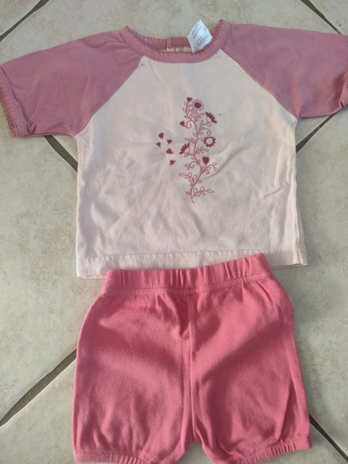 Lot de 2 ensembles été t-shirt+ short 3 mois. peu porté bon état