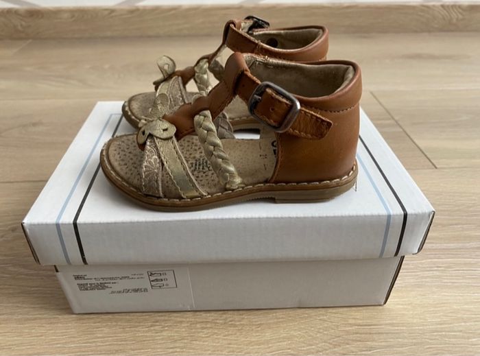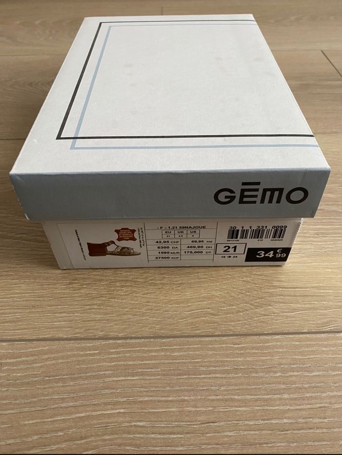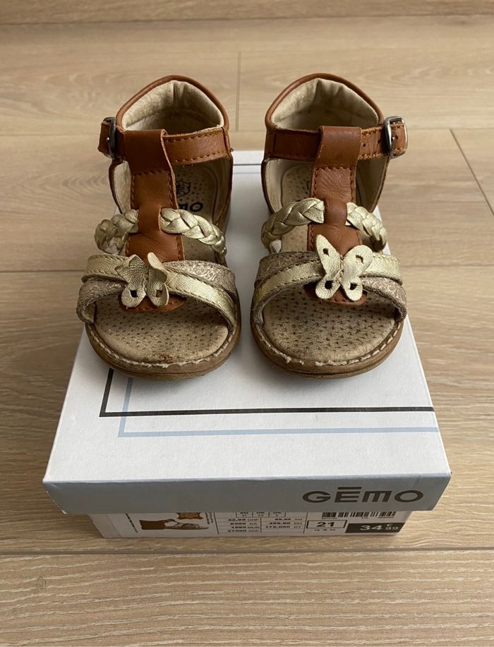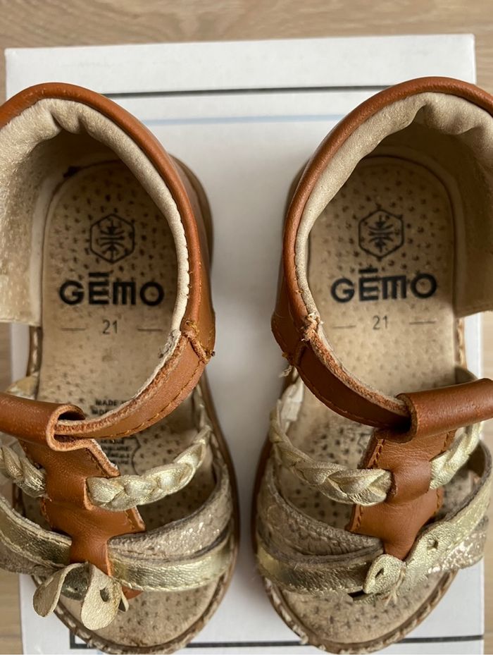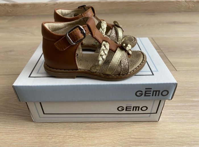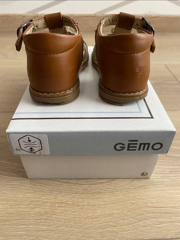 Sandales en cuir de marque Gémo Taille : 21 En bon état (traces d’usure présentes sur les chaussures), vendue avec sa boite d’achat