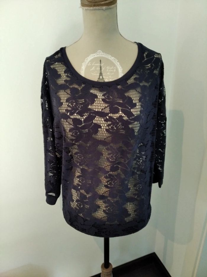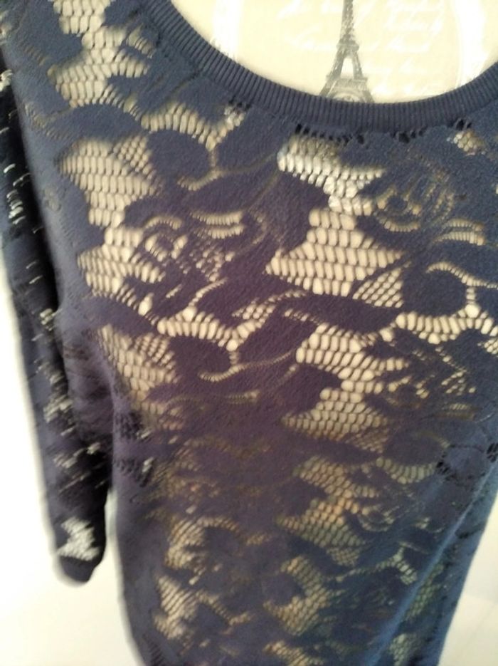 Vends un pull femme transparent motif fleurs. Marque Atmosphère, taille 38. Très bon état.