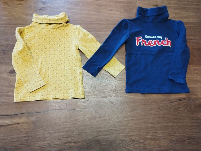2 hauts Tape à l'oeil, à manches longues et col montant, taille 2 ans/86cm, en parfait état.