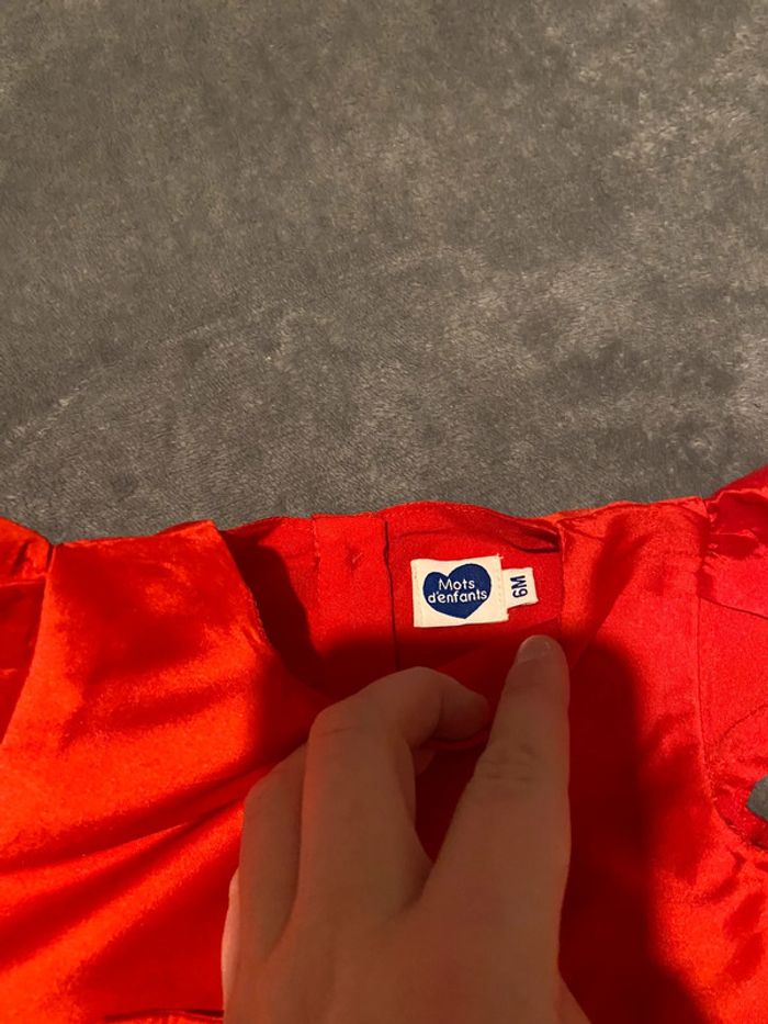 Robe de soirée ou Robe de noël Marque : Mots d’enfants Taille : 6 mois Couleurs : rouge et pailletée ✨ ❤️ État : neuve !!! 😍 Mise une seule fois, magnifique 🥹 Envoi rapide 📬 Tous les habits sont nettoyés avant l’envoi 😊 N’hésitez pas a faire un tour dans mon dressing pour profiter des réductions pour l’achat d’un lot 🌺