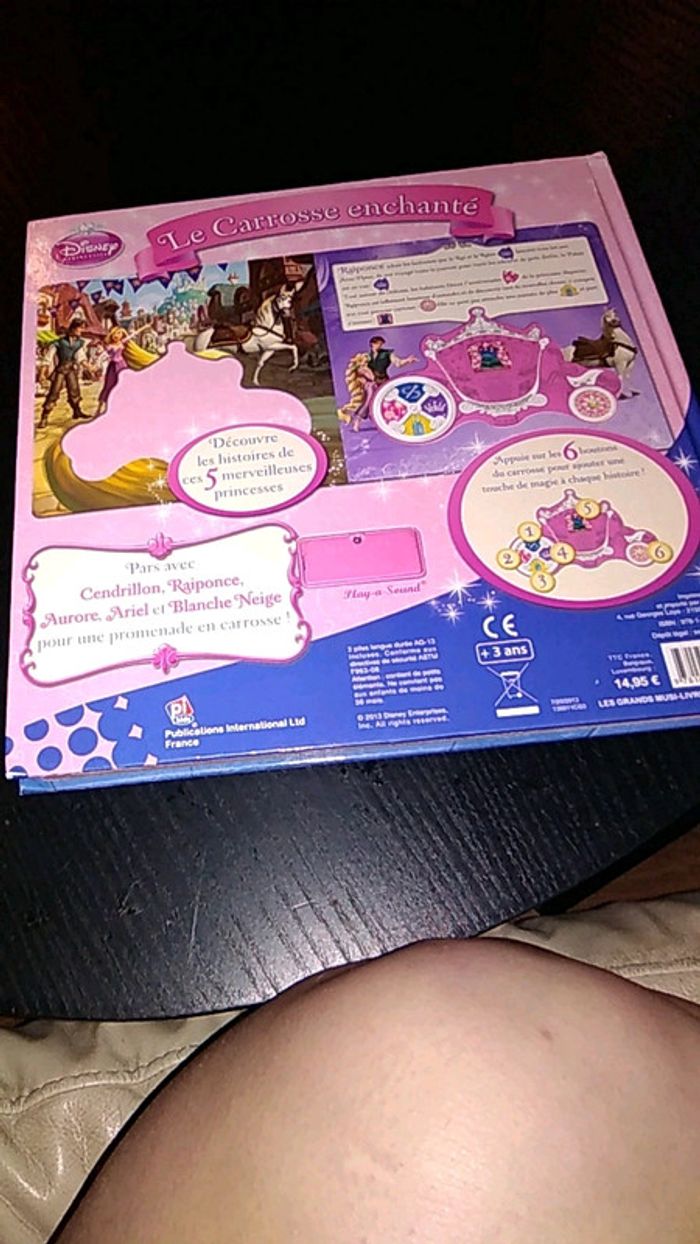 En très bon état hormis le coin inférieur gauche de la face avant une bonne heure légère éraflure Les piles fonctionnent encore ! Possibilité d'acheter en lot pour bénéficier d'une réduction et d'un port avantageux #feuilloley86livres #livreenfant #princessedisney