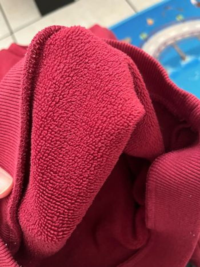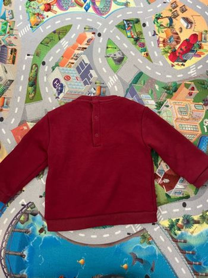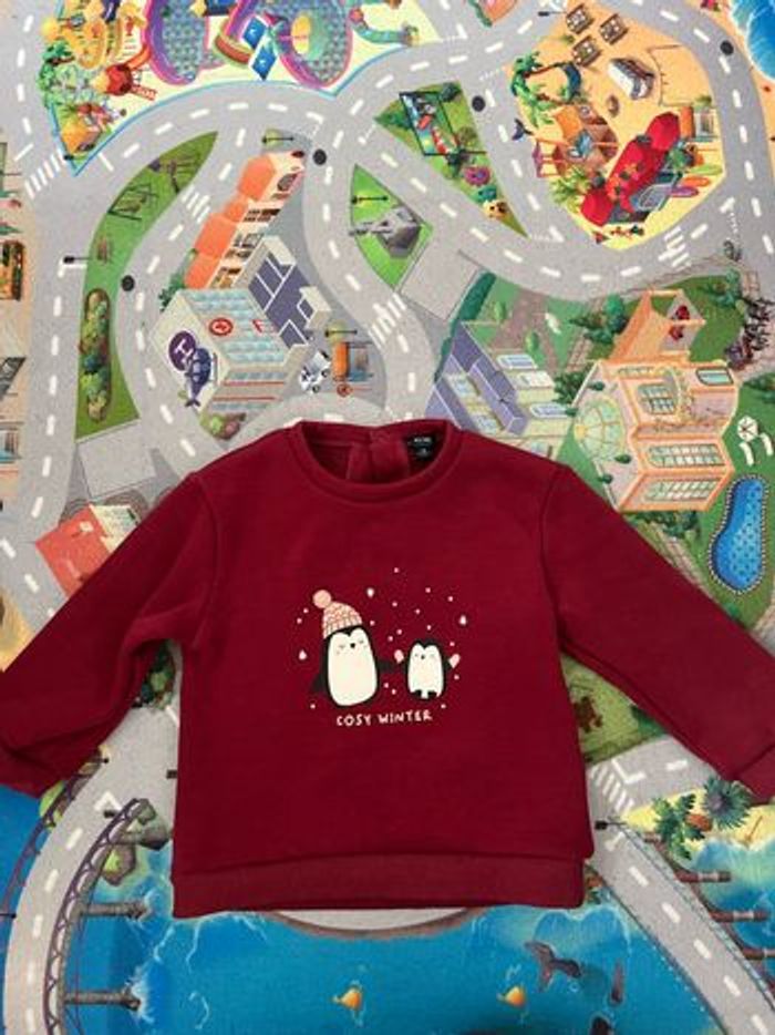 Pull rouge à motif pingouins taille 18 mois. Bon état général il a juste de tout petit accros c’est très léger (voir photo ) avec intérieur polaire. De chez Kiabi