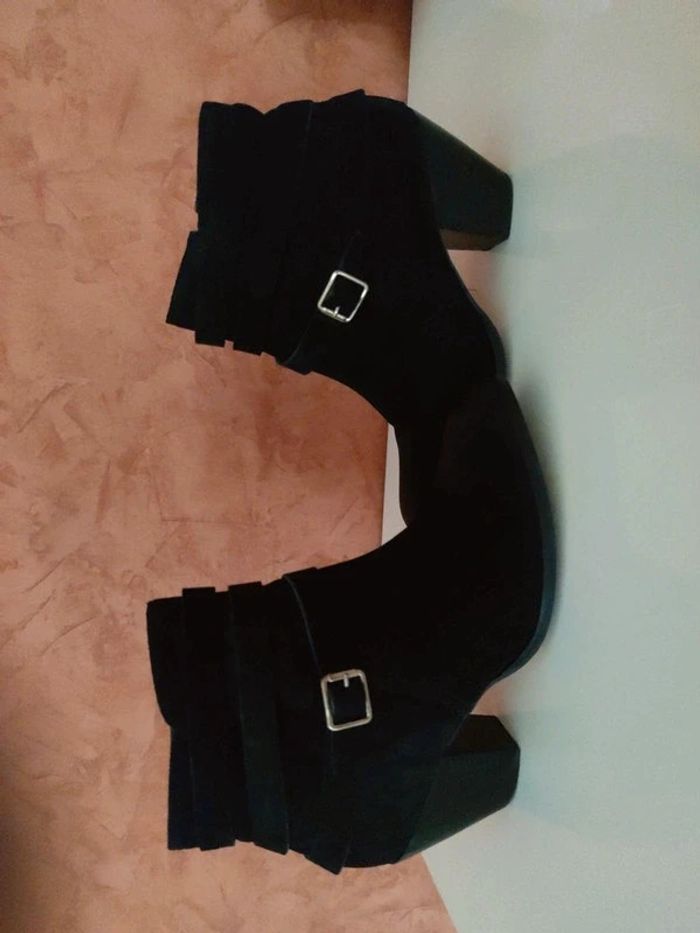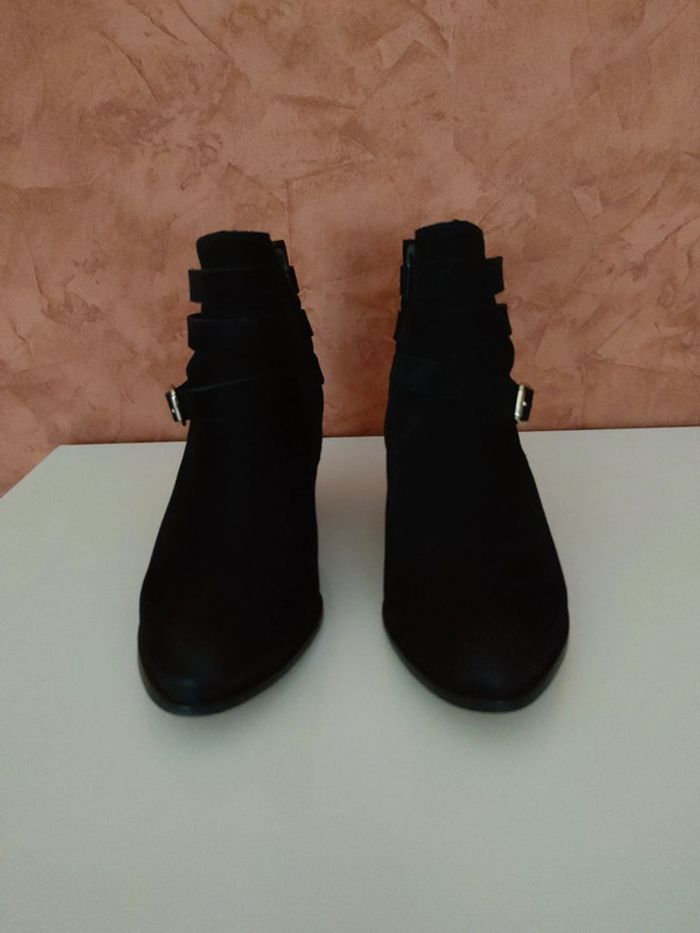Bottines en nubuck noir, le bout effet lustré d'origine Parfait état Portées 2 fois Hauteur de talon 6cm