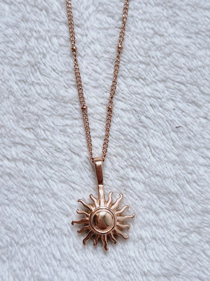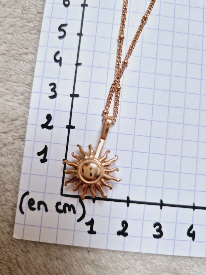 Parfait état 0 défaut Pendentif soleil Couleur rose golden Chaîne avec petites boucles 48cm de longueur de chaîne, 5cm de rallonge de chaine #Collier #Halsketting #Collar #Colar #Collana #Halskette #Halsketting #necklace #rosegold #collieracierinoxydable