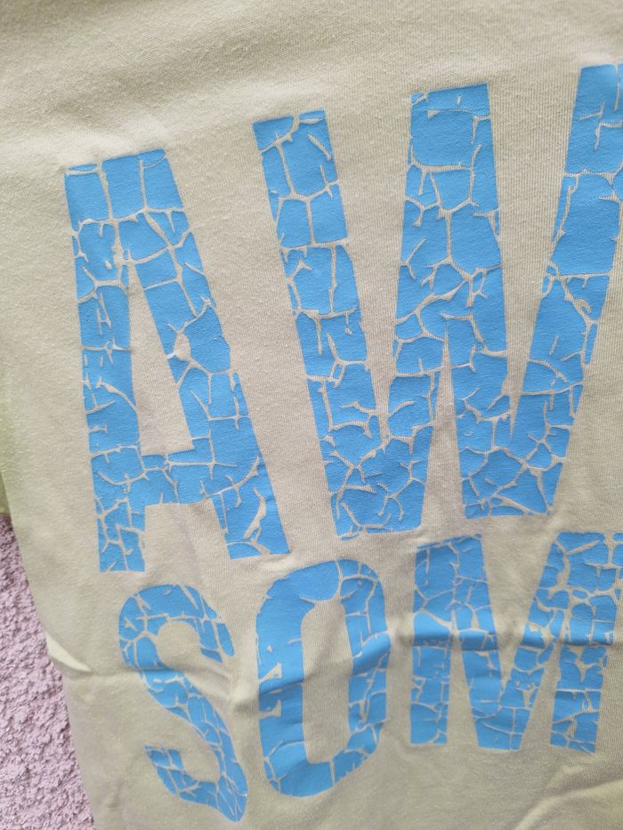 T-shirt à manches courtes Marque Kiabi Taille 10 ans 138/143 cm Couleur vert anis uni et écriture bleu clair Écriture craquelée non dûe à l'usure, c'est le style du t shirt 🚨 Réductions activées sur les lots 🚨 🟡 2 articles -5% 🟠 3 articles -10% 🔴 5 articles et plus -15% #10ansgarconevaura76 #tshirt #Kiabi #10ans #138/143cm