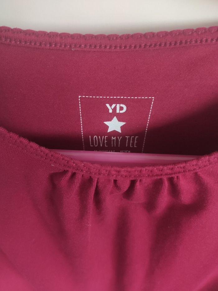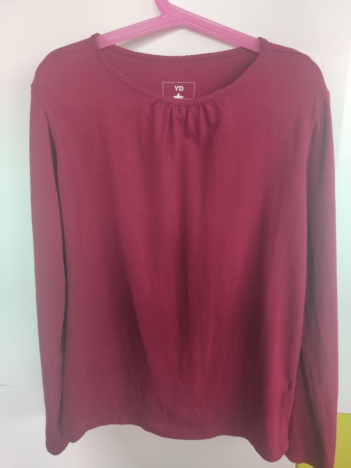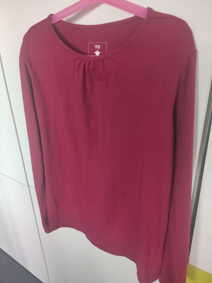 Tee shirt en coton extensible couleur framboise taille 156 cm. Col un peu froncé et légèrement festonné, bas des manches un peu festonné aussi, un basique ! Très bon état acheté à Primark