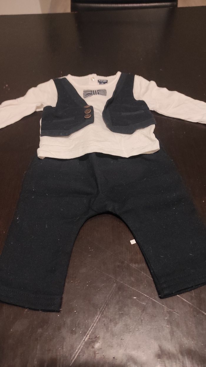 Bonjour je vends un joli petit ensemble style costard. Taille 3 mois jamais porté. N'hésitez pas pour plus de renseignements.