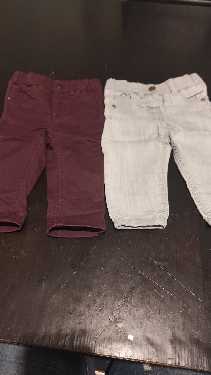 Bonjour je vends deux pantalons en taille 3 mois. N'hésitez pas pour plus de renseignements.