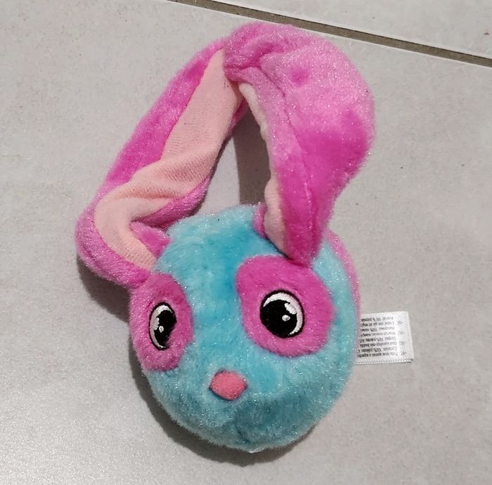 Lapin en peluche porte clefs. Les oreilles sont aimantees