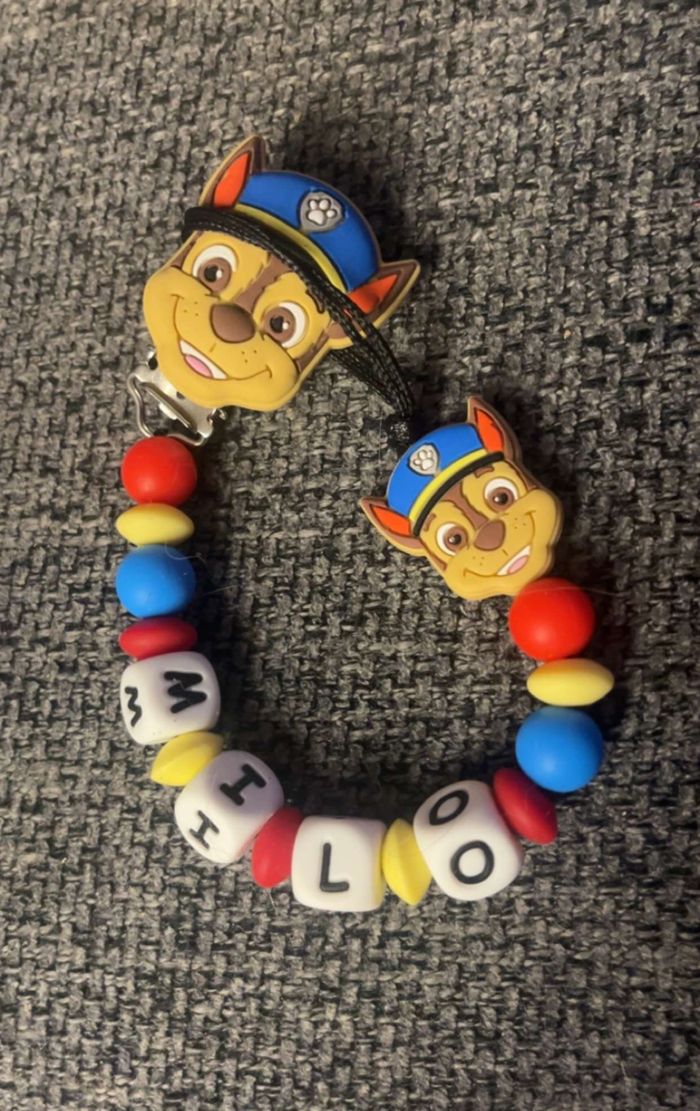 Attache tétine personnalisé en silicone ou en bois au souhait de l’acheteur . Personnalisable au choix de l’acheteur que ce soit la couleur comme le prénom ou le thème . Le fil est doublé pour plus de sécurité tout le long de l’attache tétine. N’hésitez pas à me demander et regarder mon dressing. Une photo vous sera envoyée avant l’expédition pour vous ayez un aperçu du rendu. Tous les produits sont réalisés avec du materiel spécial conçu aux bébés , enfants.
