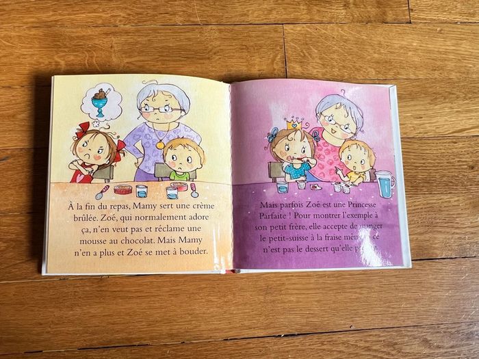 Livre princesse parfaite Zoé est capricieuse Tome 14 Zoé est une adorable petite fille qui n'en fait qu à sa tête. Mais comme toutes les petites filles, elle peut aussi devenir une Princesse Parfaite, qui fait tout bien comme il faut Bord du livre marqué Contours des pages jaunis N’a plus de diplôme à la fin