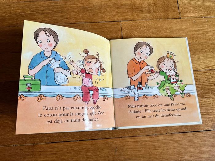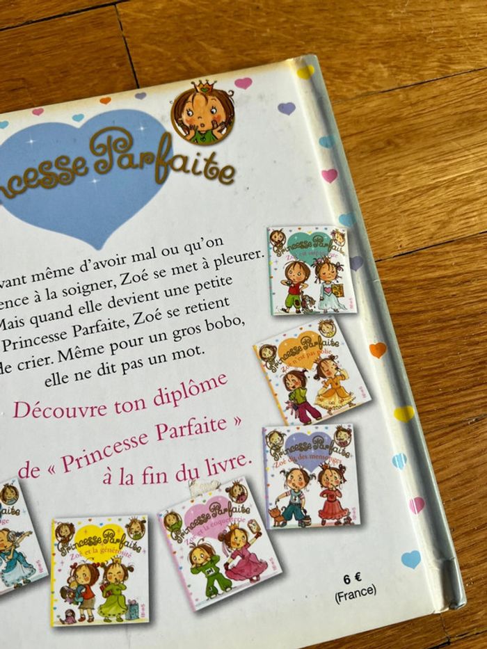 Livre princesse parfaite Zoé est douillette Tome 7 Zoé est une adorable petite fille qui n'en fait qu à sa tête. Mais comme toutes les petites filles, elle peut aussi devenir une Princesse Parfaite, qui fait tout bien comme il faut Bord du livre marqué Contours des pages jaunis N’a plus de diplôme à la fin