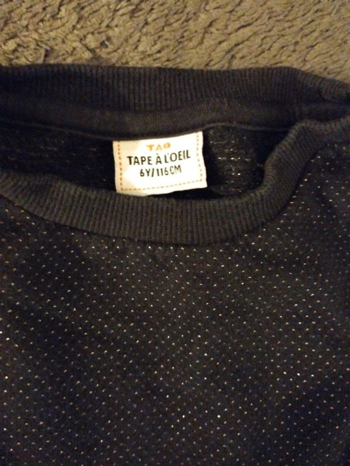 Ensemble tape a l'oeil. Attention pantalon en 5 ans mais pull en 6 ans. Pour ma fille de 5 ans ça allait impeccable comme ça. En très bon état. Envoi rapide.