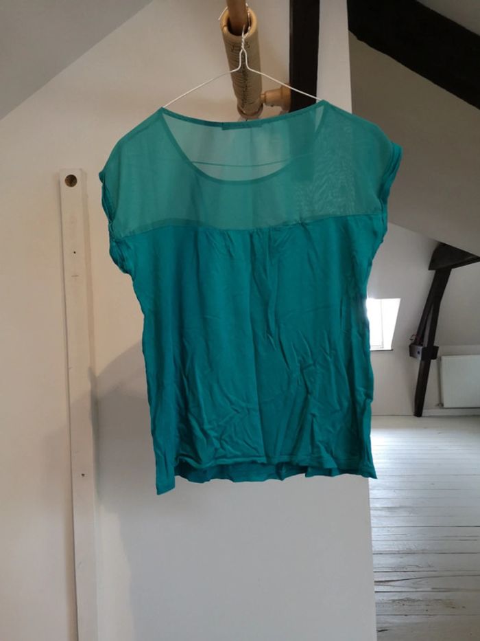 Tee-shirt avec haut en transparence A été recousu à l'arrière (voir photo) Sinon en bon état