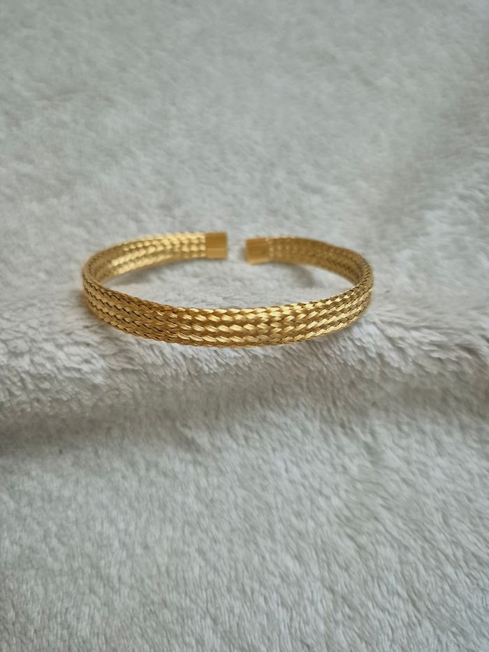 Joli Bracelet doré tissé ruban tressé Acier inoxydable De couleur doré #Bracelet #Armband #Pulsera #Pulseira #Bracciale #acierinoxydable #golden #doré