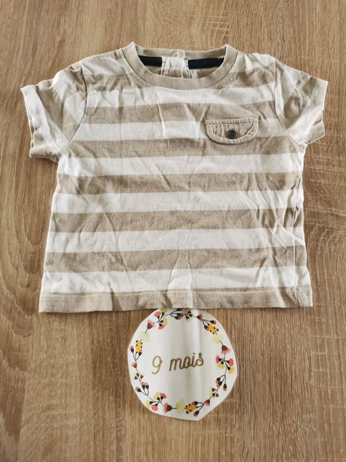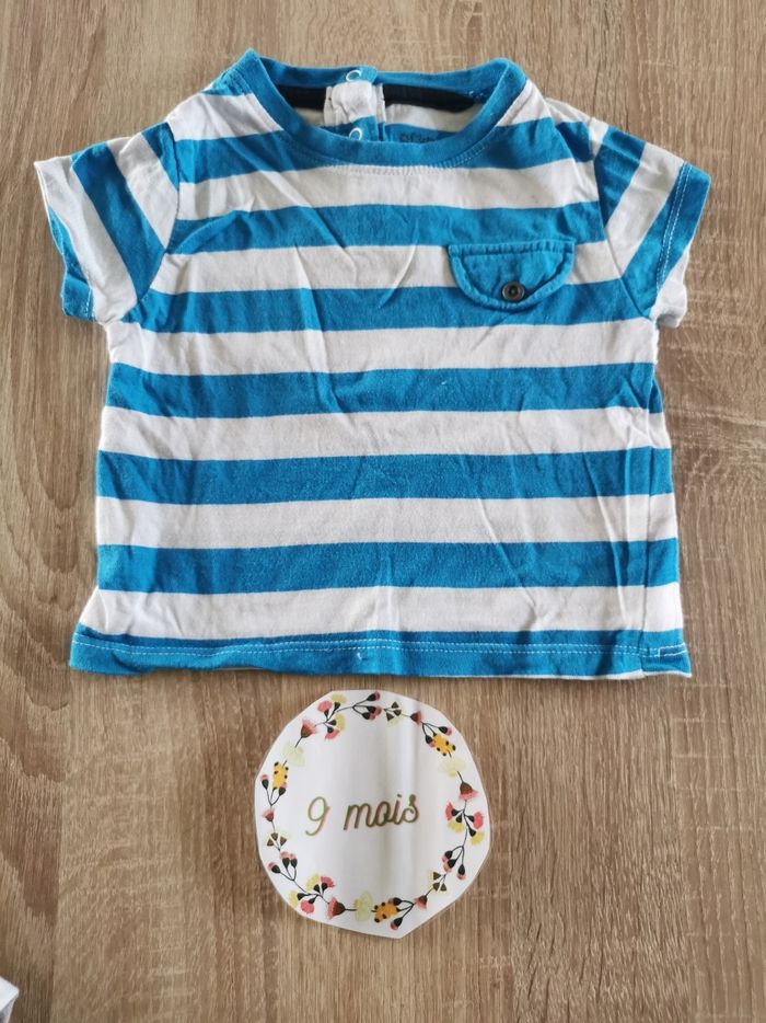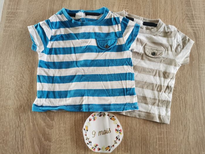 Lot de 2 t-shirt manches courtes à rayures bébé garçon 9mois kitchoun - photo numéro 1