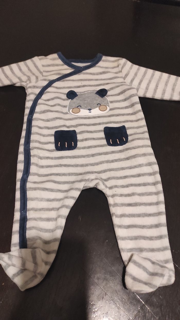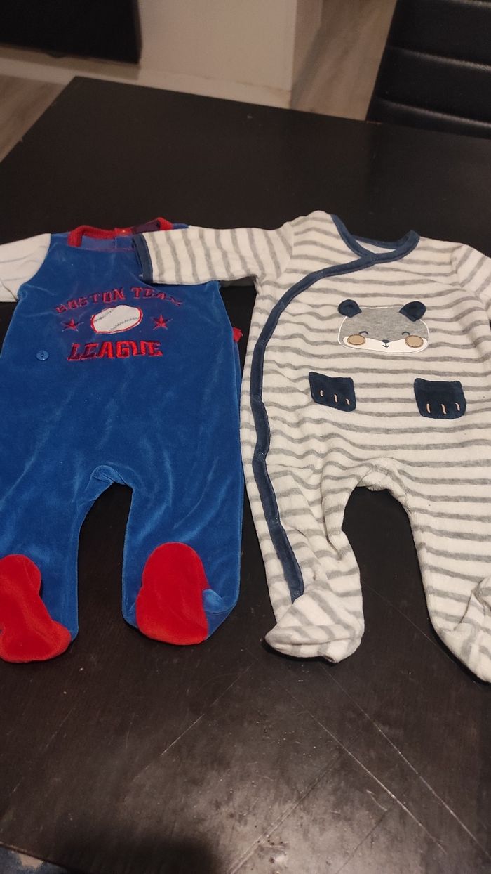 Bonjour je vends deux pyjamas en 3 mois. Le bleu est noté en 0/1mois mais en réalité il taille en 3 mois. N'hésitez pas pour plus de renseignements.
