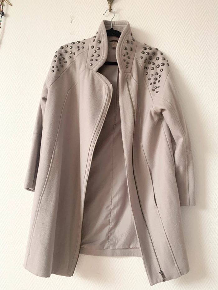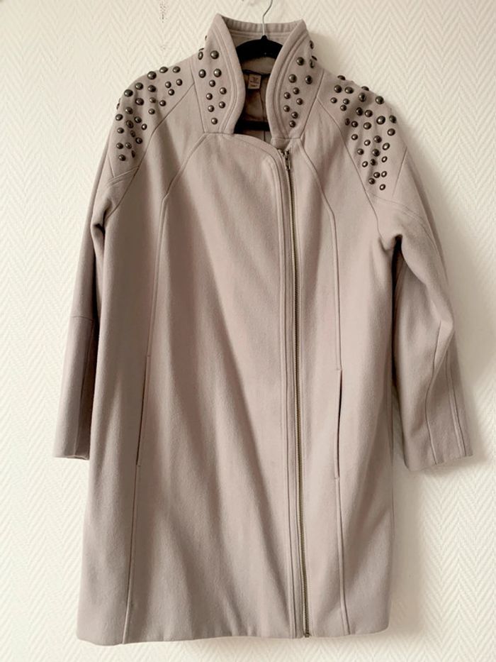 Très beau manteau en laine avec studs Taupe claire - photo numéro 1