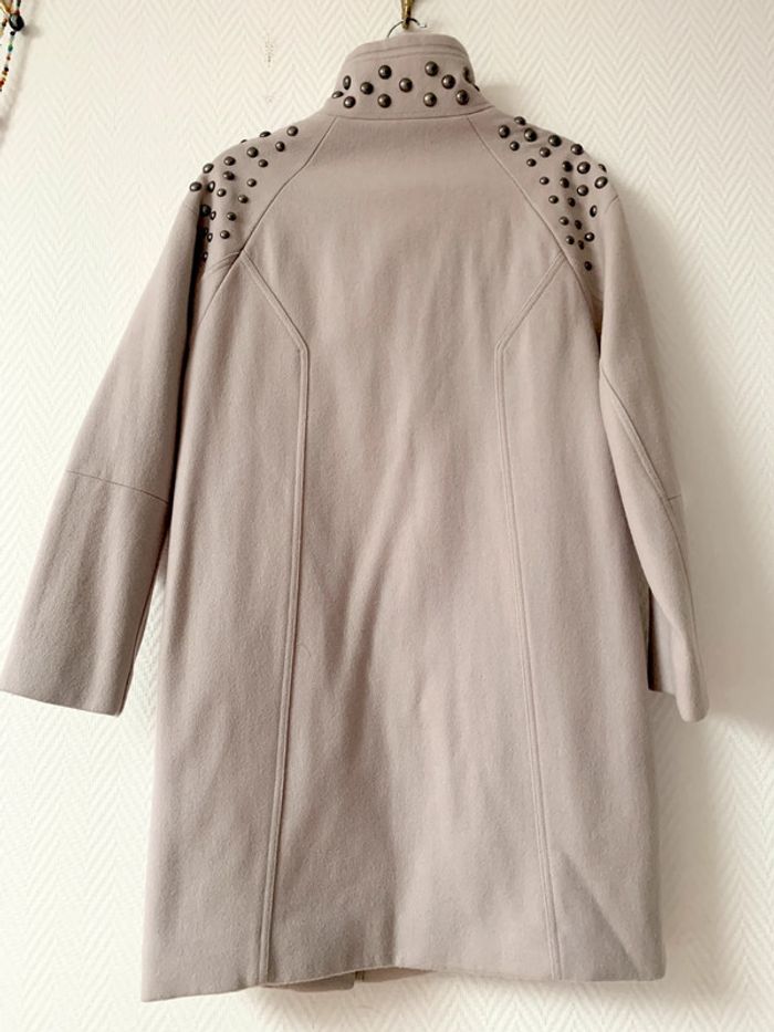Très beau manteau en laine avec studs Taupe claire - photo numéro 3