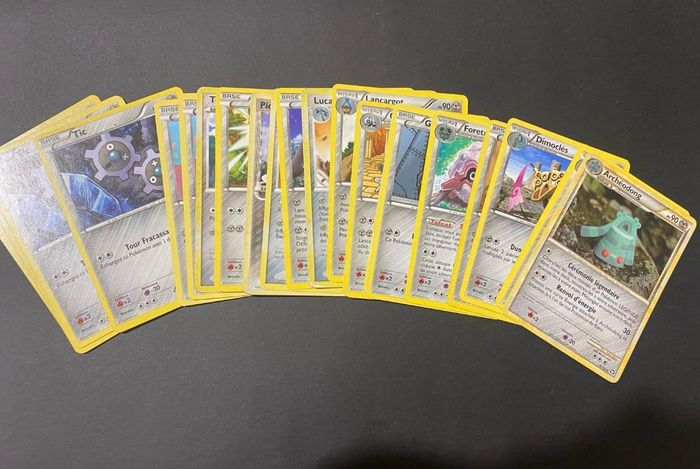 Faire offre pour une ou plusieurs cartes. Pour photo me demander. MÉTAL Archéodong •15/102• Clic •89/135• Dimoclès •84/146• Fermite •83/101• Foretress •60/106• Galekid •78/124• Galekid •57/111• Galegon •79/124• Lançargot •74/108• Lucario •53/127• Mysdibule •80/116• Metang •69/147• Pichu •76/110• Scalpion •78/108• Terhal •84/146• Tic ×2 •97/149• Tic ×3 •75/108• Tic •88/135•