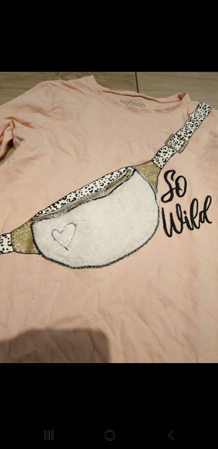 Joli t-shirt original fille avec dessin sac banane moumoute Porté reste correct Taille 12 ans