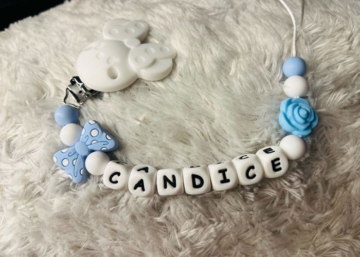 Attache tétine personnalisé en silicone ou en bois au souhait de l’acheteur . Personnalisable au choix de l’acheteur que ce soit la couleur comme le prénom ou le thème . Le fil est doublé pour plus de sécurité tout le long de l’attache tétine. N’hésitez pas à me demander et regarder mon dressing. Une photo vous sera envoyée avant l’expédition pour vous ayez un aperçu du rendu. Tous les produits sont réalisés avec du materiel spécial conçu aux bébés , enfants.