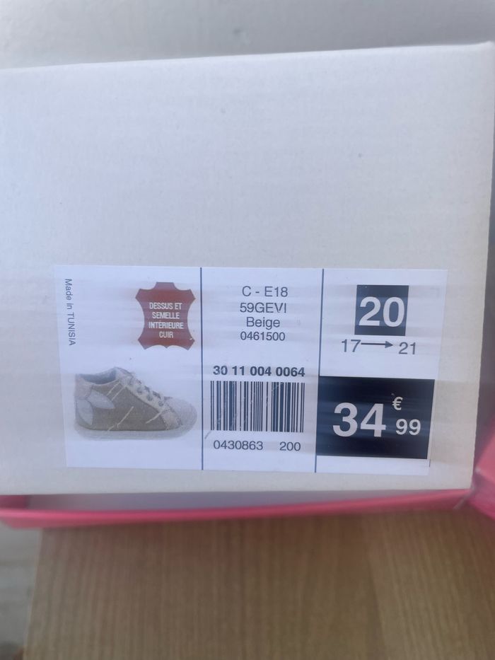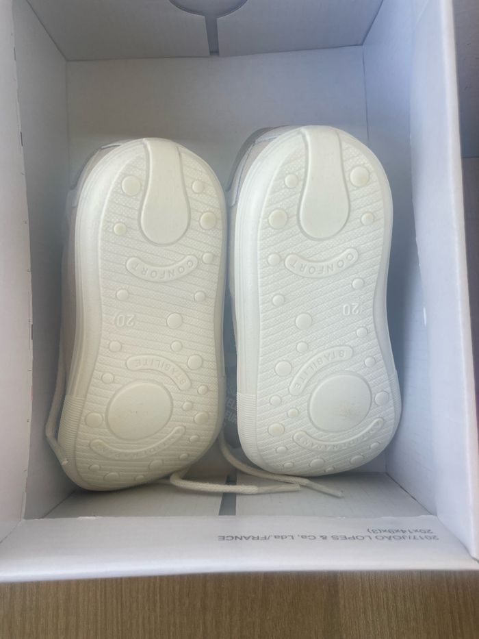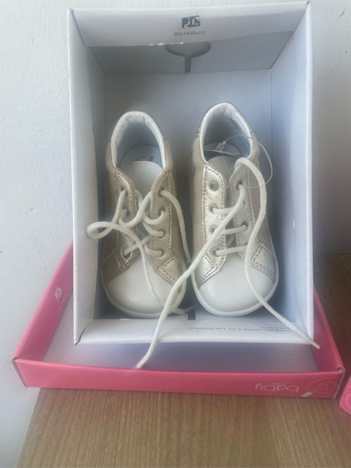 Vends DEUX paires de chaussures premiers pas filles taille 20 jamais mise 30€ l’une 55€ les deux prix fixe