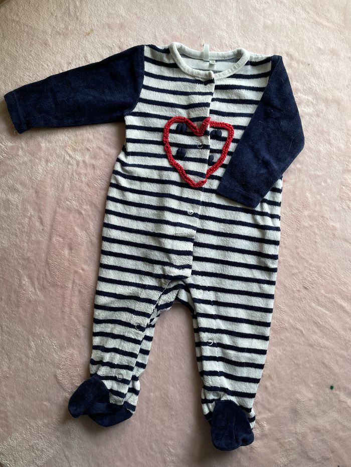 Pyjama marin très peu porté avec bouton de pression sur le devant et entre les jambes