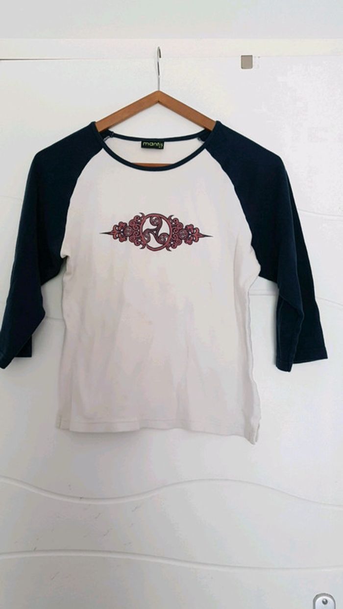 T-shirt manche 3/4 blanc et marine taille 40 - photo numéro 1