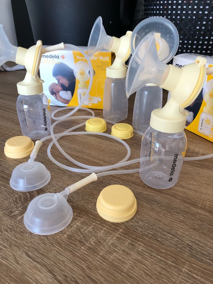 Set pour tire lait medela, deux personnal fit plus taille 21 + deux autre tèterelles 21 simple. Avec 4 biberons et leurs bouchons, également des sacs conservation pour lait maternel (14). Possible ajout de téterelles taille 24 gratuitement, deux paires. Peu servi car arrêt de l’allaitement. Envoi rapide