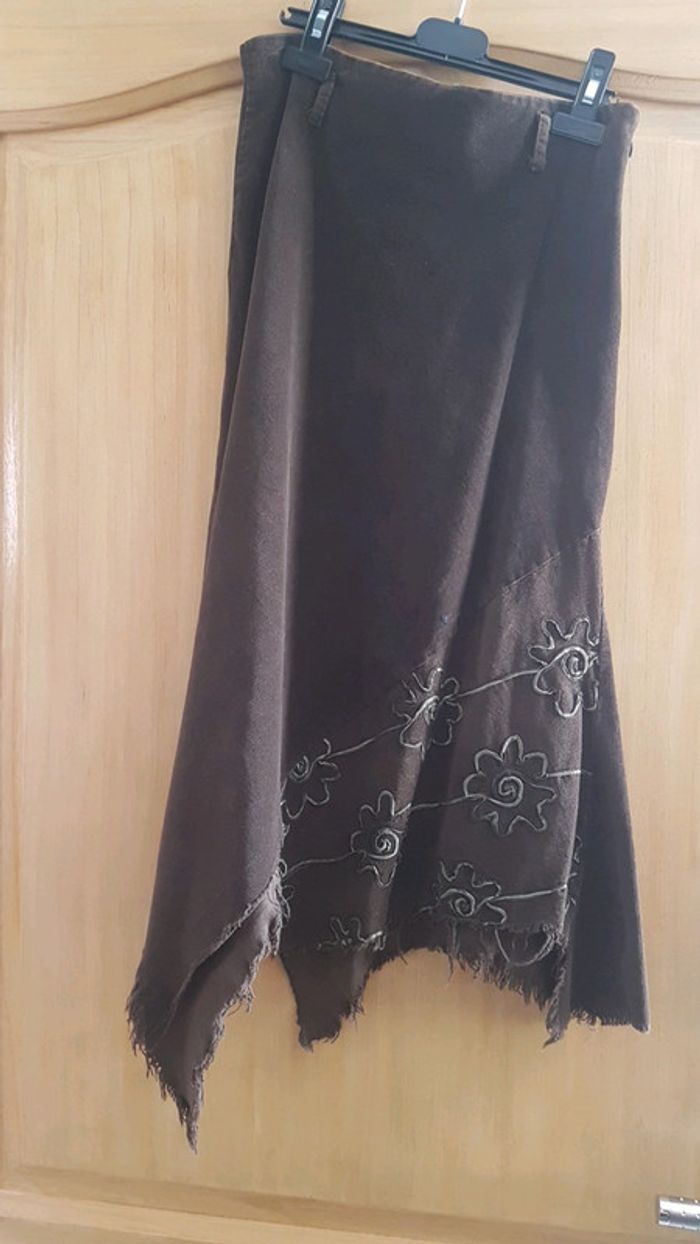 Marron avec broderie verte sur le bas taille 38/40 M Longueur au plus court 60 cm Au plus long 86cm