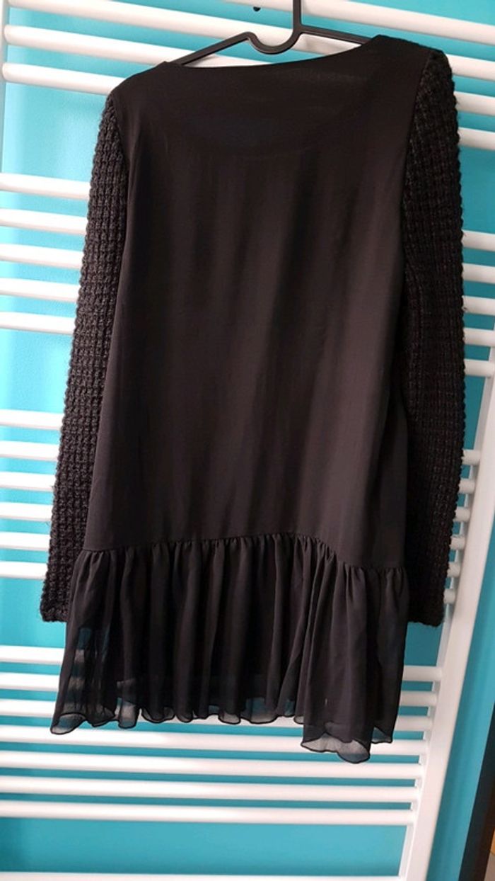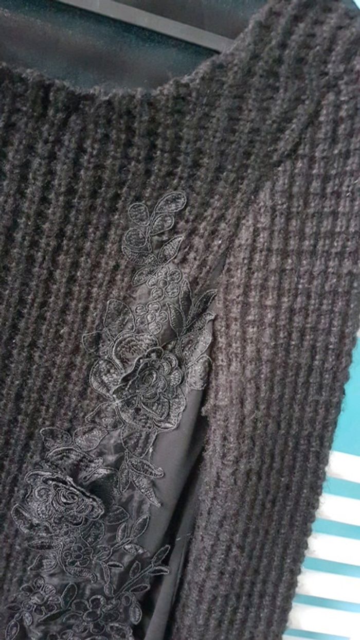 Comme neuf Magnifique pull en bi-matiere et broderie sur le devant Il y a une doublure Super avec un jean