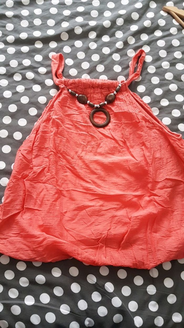Avec bijoux en bois Corail Magnifique avec un pantalon blanc Effet boule