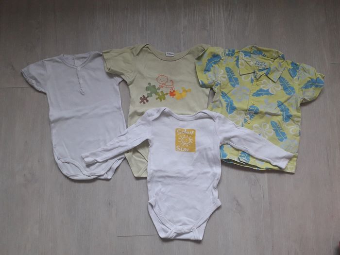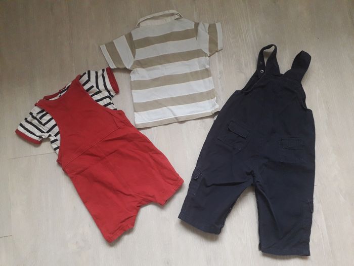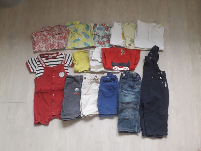 Lot de vêtements en bon état des marques Orchestra, Zara, Mango, Elle est où la mer, DPAM...composé de 3 chemises manches courtes, 3 t-shirts manches courtes, 1 polo manches courtes, 3 shorts, 1 jean, 1 salopette, 1 barboteuse, 1 body manches courtes et 1 body manches longues. Taille 12mois. Je donne également 1 autre body manches courtes (avec une légère imperfection mais il peut dépanner)