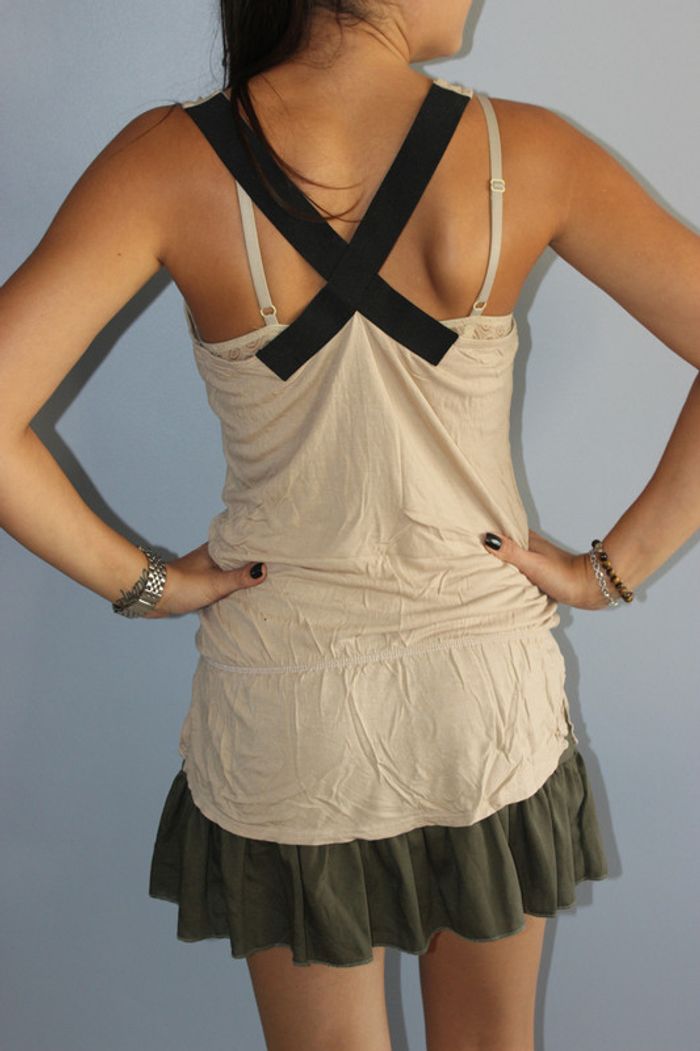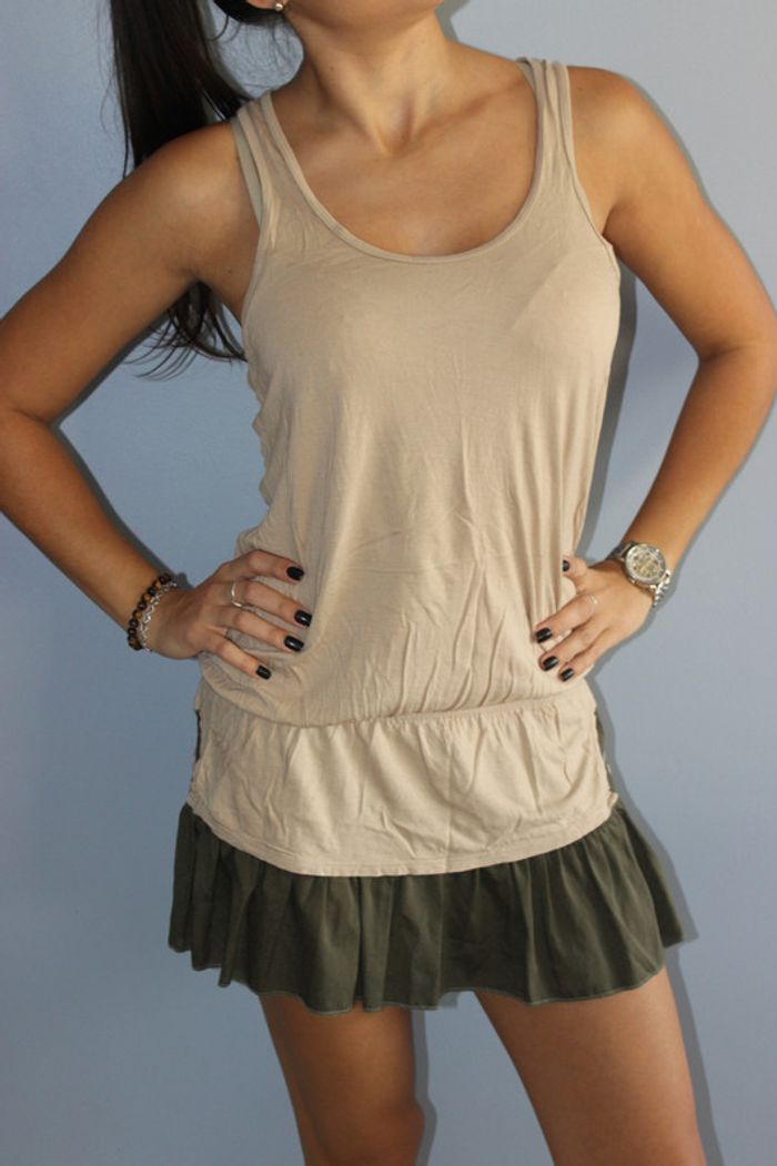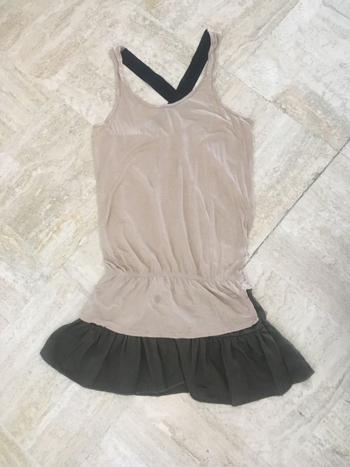 Bonjour, Je vends cette très jolie robe 👗 beige, avec le bas en kaki et le dos nu croisé avec des bretelles noires. Très légère elle comporte un tout petit trou en bas à droite comme indiqué sur l’une des photos, mais peu visible. Achetée sur asos Peu portée tout de même. Taille 36 👗