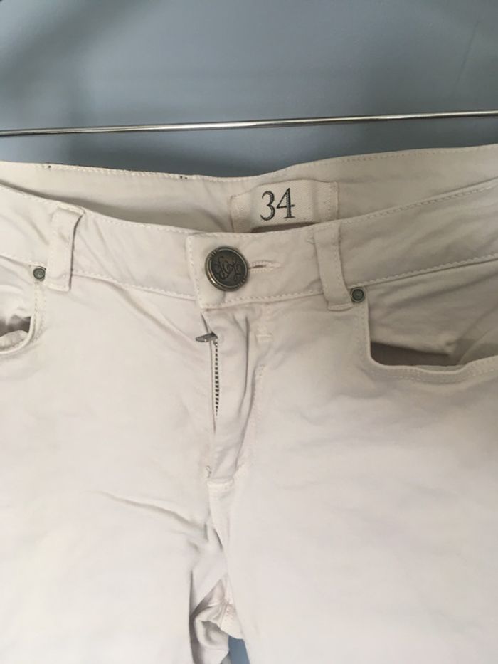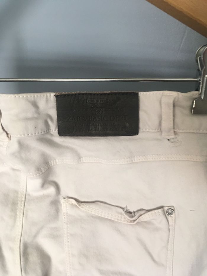 Bonjour, Je vends ce joli pantalon skinny acheté chez Zara. Couleur : rose très pale. Taille 34 (peut convenir à un petit 36) Je le possède également en vert eau clair. Quelques marques sur le genou peu visibles mais j’ai mis une photo pour montrer un peu.