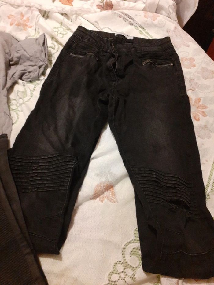 Soit 4 jeans skinny 12 ans style à trou et normal 1 pantalon imitation sky 12 ans 2 blouse 14 ans 1 pantalon slim 12 ans 1 pantalon léger 12 ans 1 tee-shirt 14 ans pas de défaut