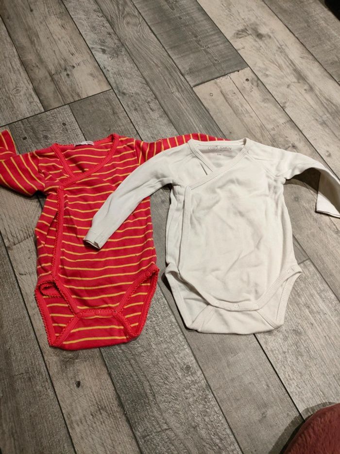 Porté mais bon état 1 body avec couleur pression partie voir photo Rouge et jaune marque dpam. Taille 67 cm Blanc marque gemo