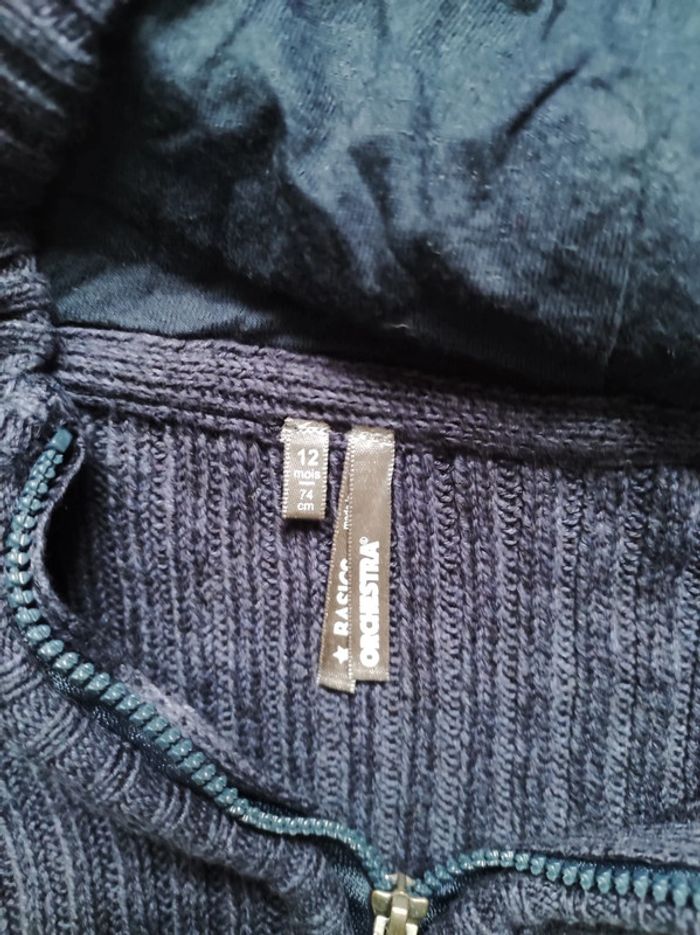 Taille 12 mois, 74 cm Gilet zippé à capuche.