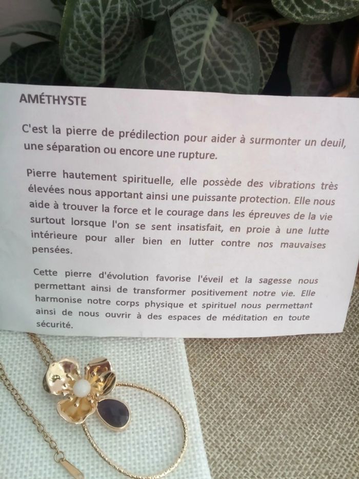 Réductions UNIQUEMENT sur les lots ☀️☀️ Jamais utilisé Prix FERME (réductions sur les lots) 🌷 pièce unique 🤍 Chaîne en acier inoxydable 40 cm et 5 cm d'extension pierres 100% naturelles pierre de lune et améthyste 💜🤍 Si vous êtes intéressée par un lot : (il faut m'envoyer un petit message sur chaque article pour que je puisse vous faire le lot avec les réductions décrites ci-dessous ☺️) 🤍 Frais de port offert pour 2 articles (3 e déduit sur la somme totale) 🤍 A partir de 3 articles je fais 10% sur le lot (sans déduction des frais de port) Vous trouverez aussi pierres naturelles précieuses d'améthyste jade labradorite kyanite ambre citrine pierre de lune onix vintage tweed oversize libellule magie wicca bohème fée boho mortelle pêche Adèle yin yang bouddhiste hindou spirituel grossesse maternité blanche rouge noir œil cœur hindi cargo cadeau bola scarabé sorcellerie ésotérisme mode maman amulette bonheur ethnique santé guérison prière talisman prénom manga chemin indien oriental viking celte obsidienne trèfle zircon or 18k 24k lithothérapie dentelle ambre cadeau anniversaire mariage baptême fête coeur