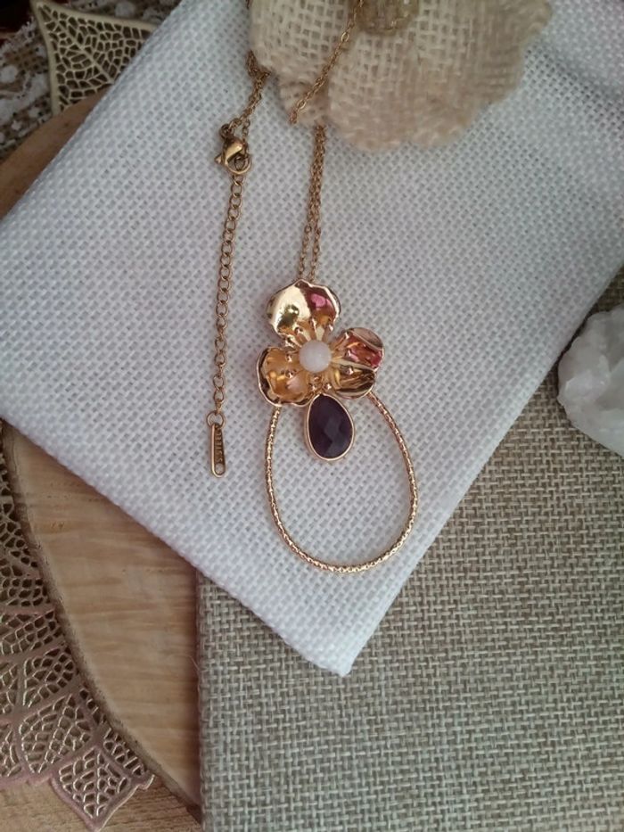 Collier bohème fleurs et pierres semi précieuses - photo numéro 1