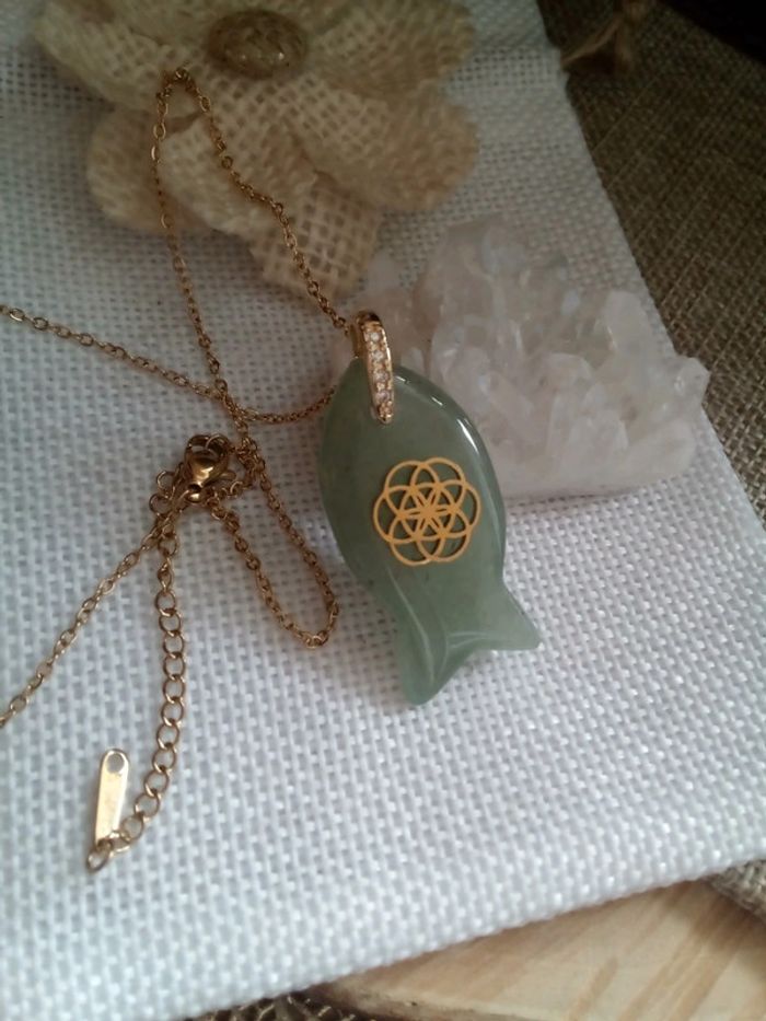 Collier poisson en pierre d'aventurine et fleur de vie - photo numéro 3