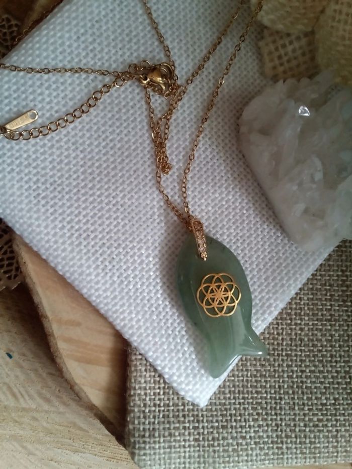 Collier poisson en pierre d'aventurine et fleur de vie - photo numéro 2