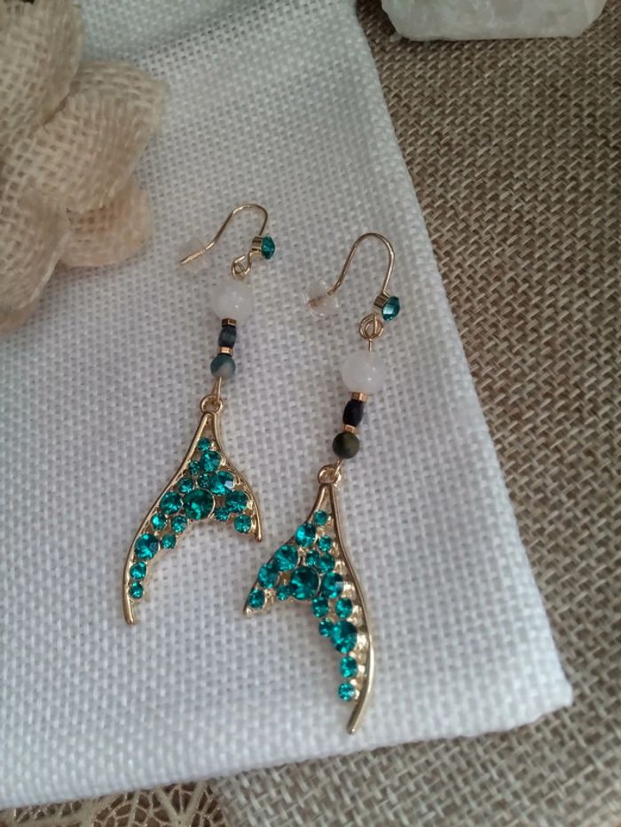 Boucles d'oreilles pierres naturelles queue de sirène - photo numéro 1
