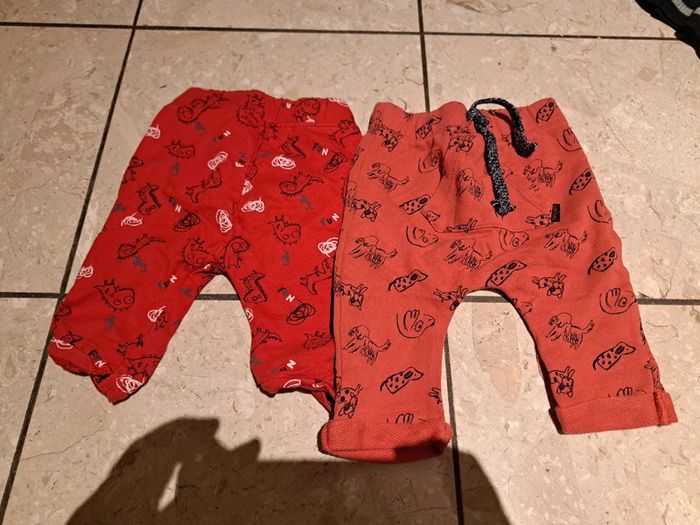 2 pantalons confortables dans les tons rouges Poche sur le devant sur l'un des 2 Elastiques 3 mois