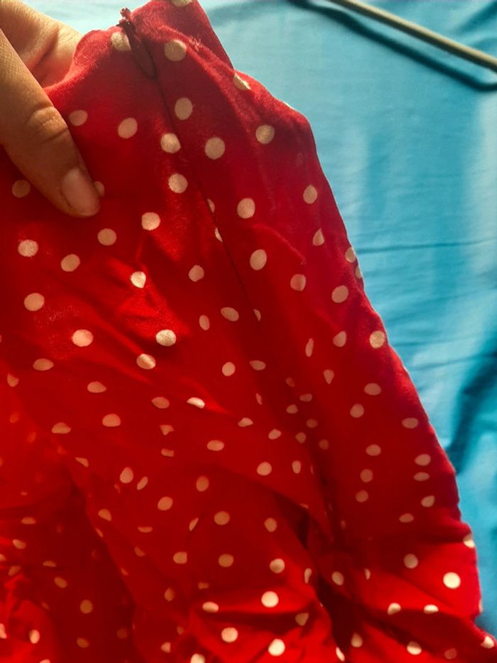 Jupe courte rouge à pois blancs Zip invisible sur le côté