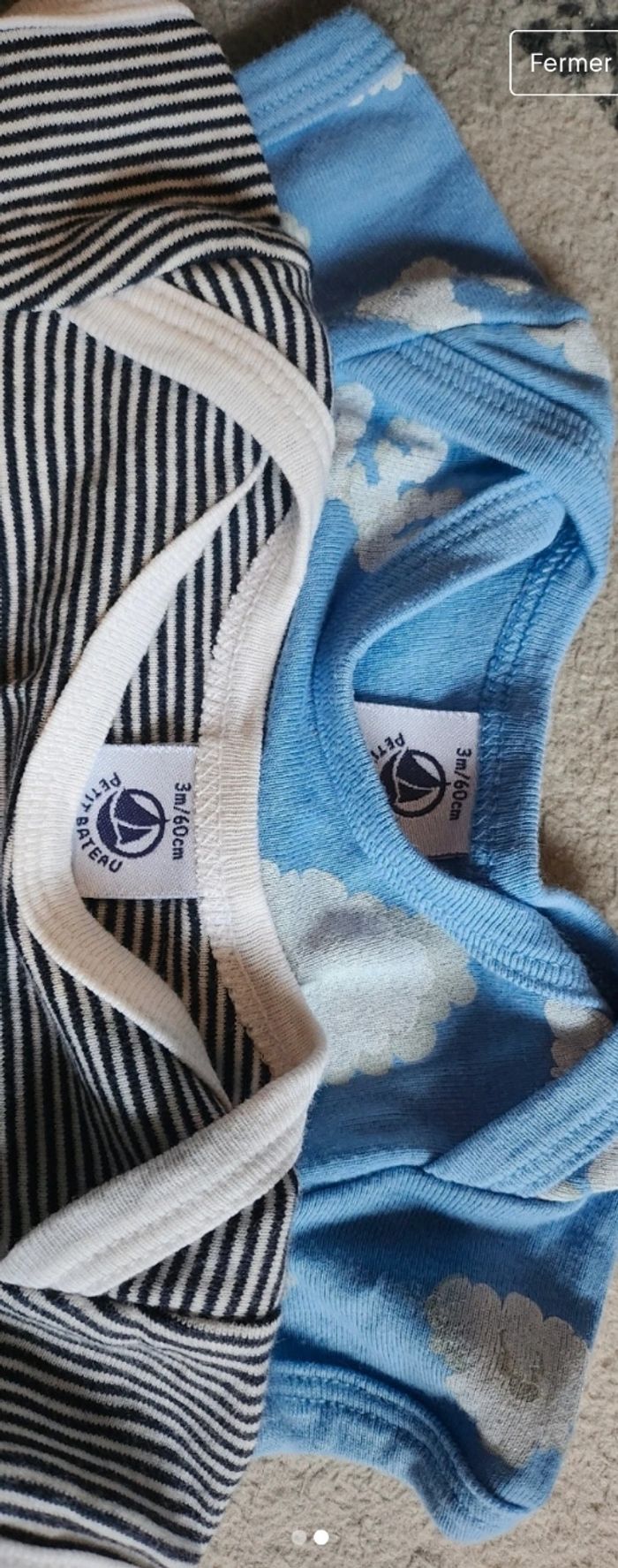 Lots 2 body bébé garcon manche courte Taille 3 mois ( 60 cm) Marque : Petit bateau