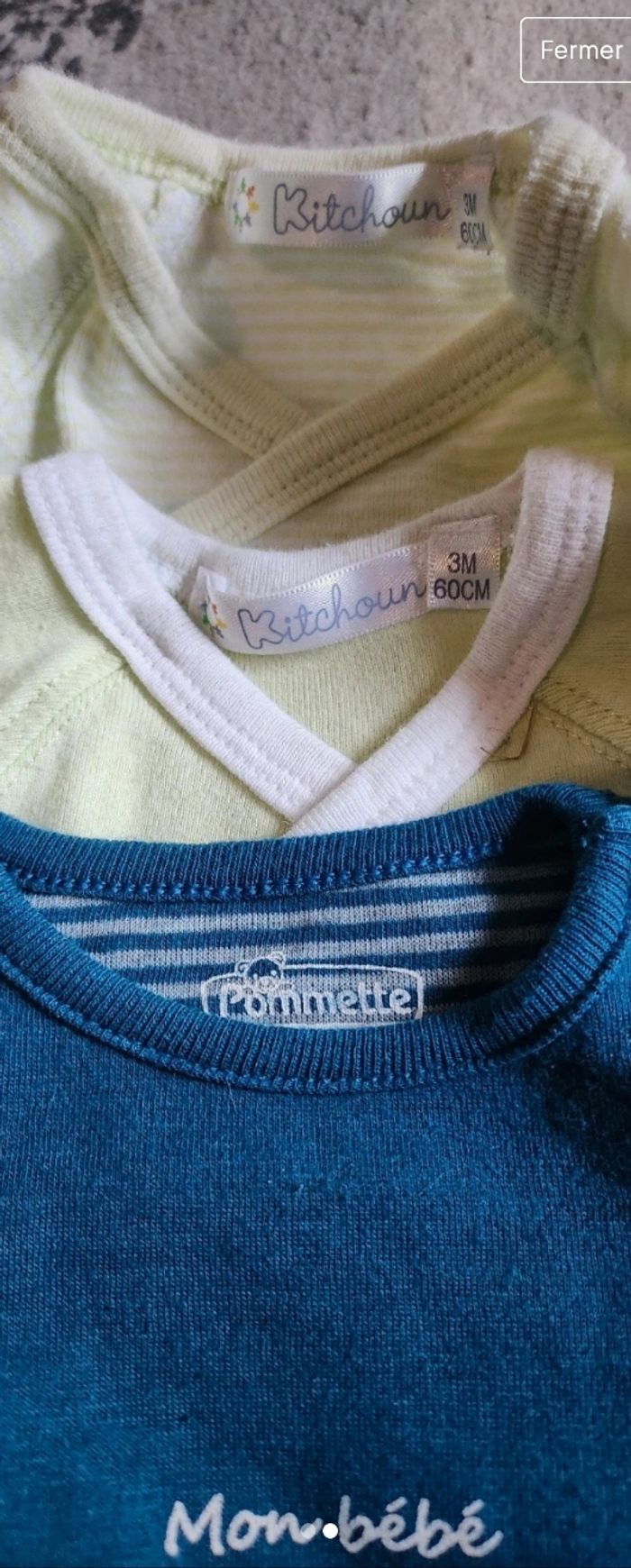 Lots de 3 body bébé garcon manche longue Taille 3 mois ( 60cm) Marque : Pommette et kitchoun