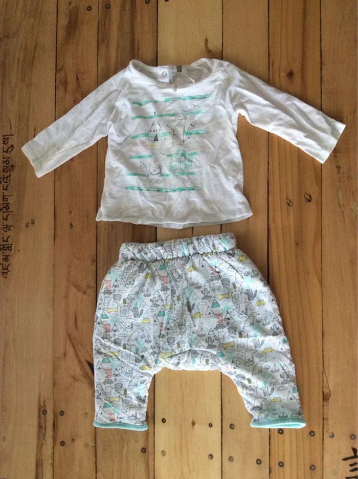 Top avec impression tipis et animaux Pantalon doublé avec impression tipis et animaux Taille 3 Mois